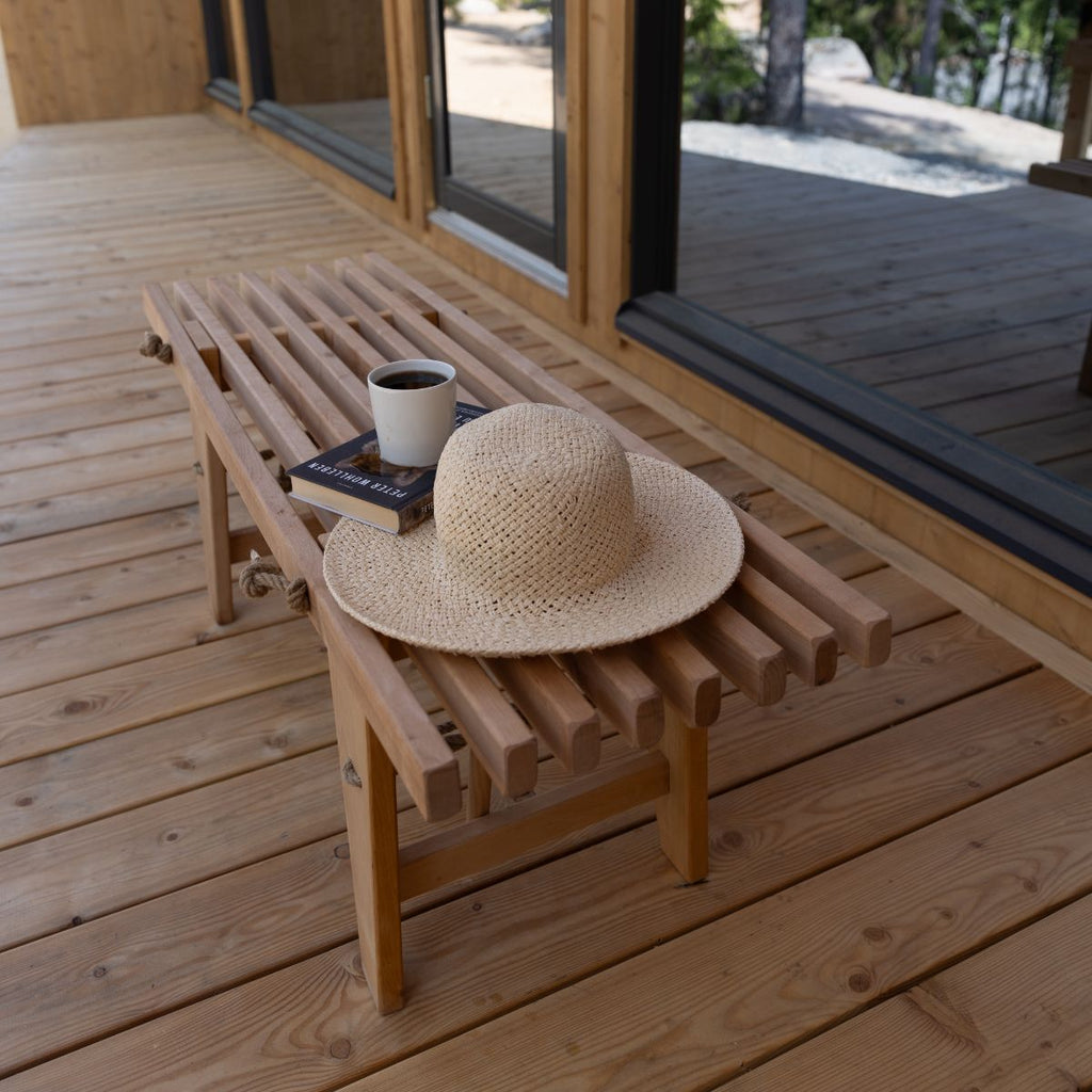 Tyylikäs ja monikäyttöinen EcoFurn® Ekopenkki sisä- ja ulkokäyttöön. Valmistettu saarnista, kootaan hamppunaruilla. Penkissä ei ole metalli- eikä muoviosia.