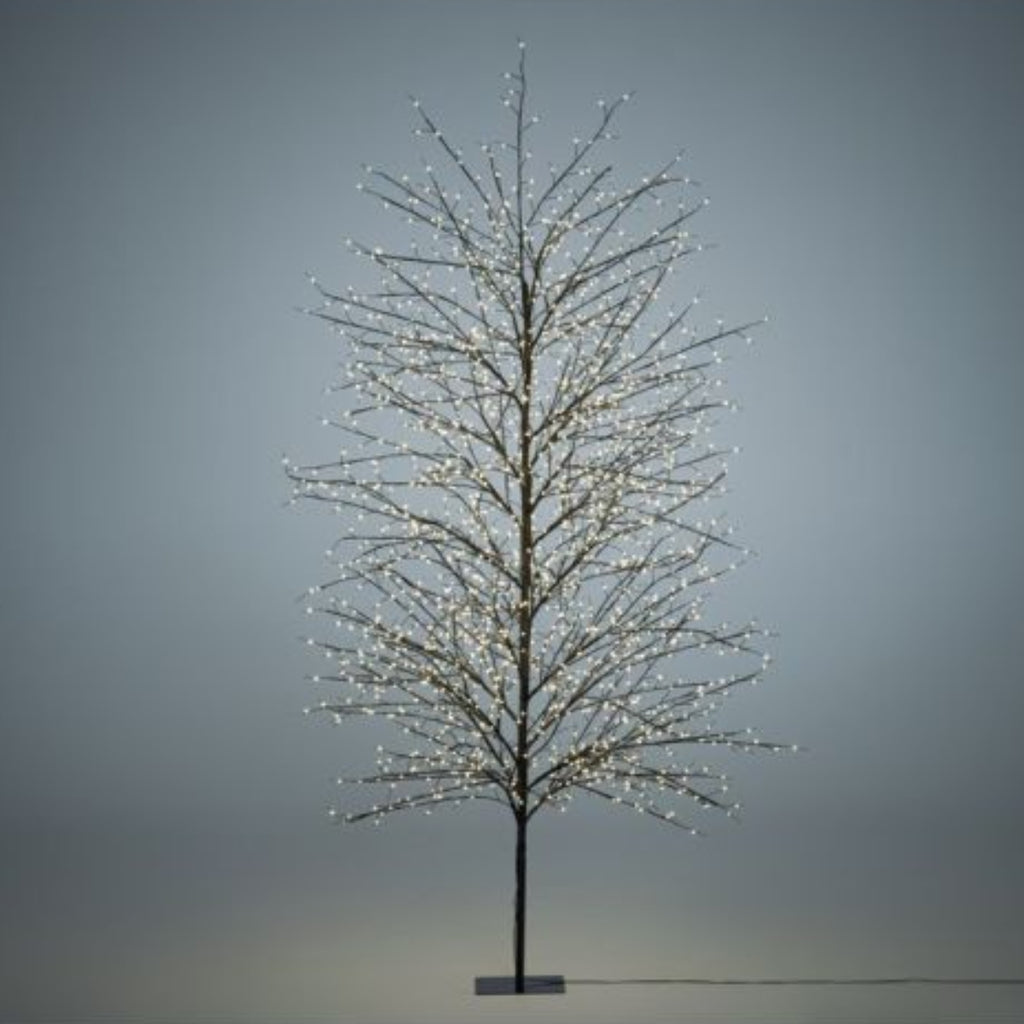 Lehdetön koristevalopuu näyttää upealta pihalla, myymälässä ja näyteikkunassa. Puussa on musta runko ja 1800 kpl lämmin valkoista LED-valoa. Puun korkeus 210 cm. Liitäntäjohdon pituus 5 m. Muuntaja IP44. Sisä- ja ulkokäyttöön.