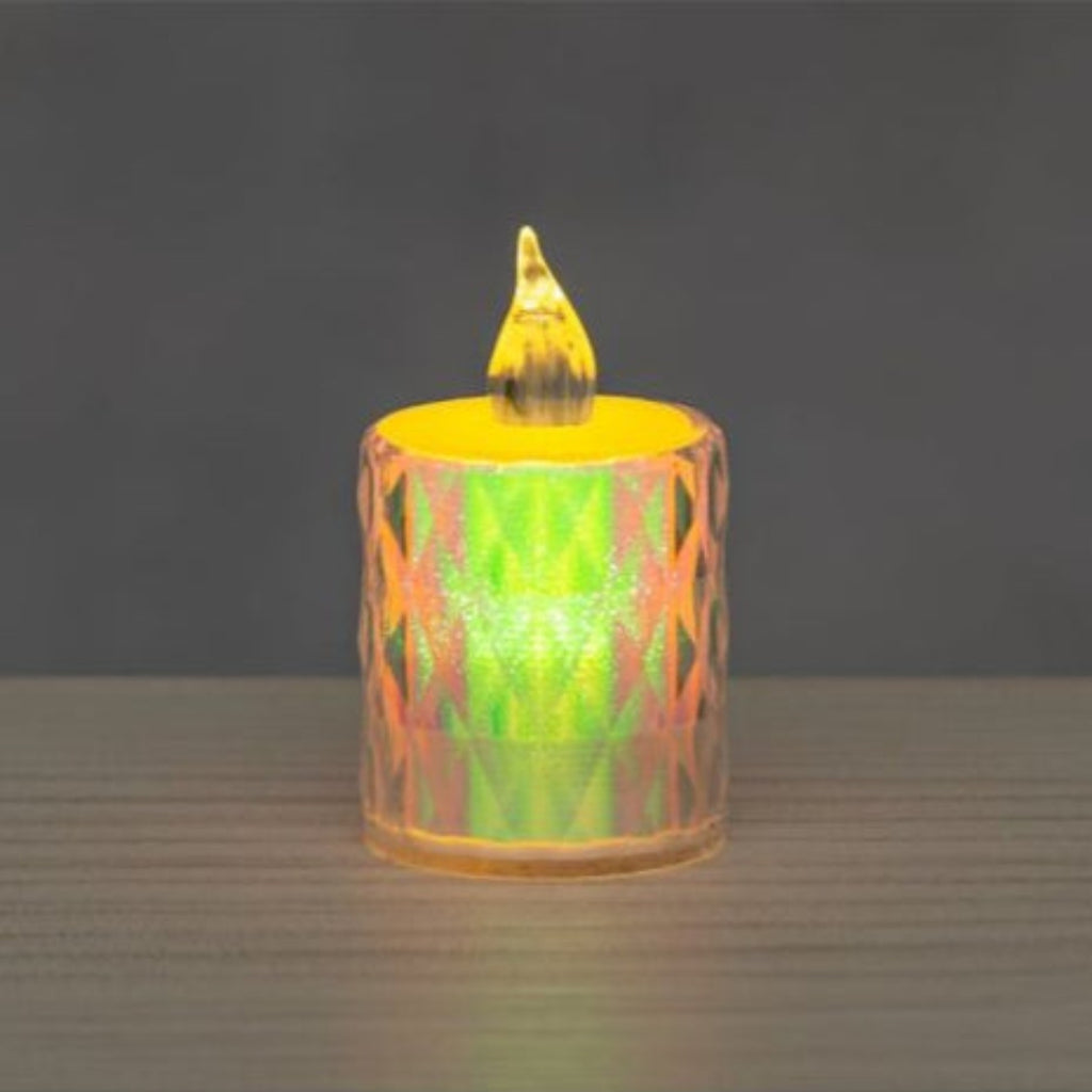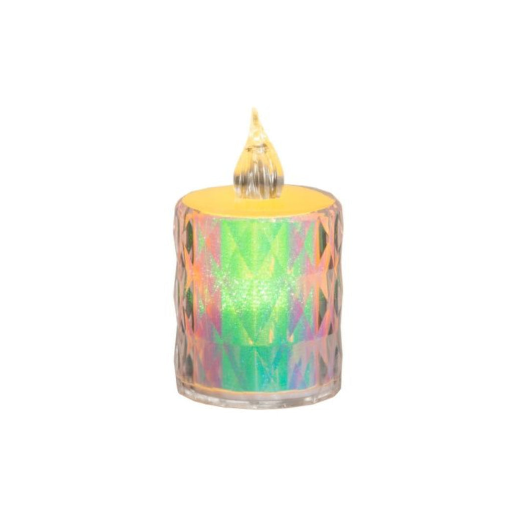 Kaunis pienikokoinen LED-kynttilä. Läpinäkyvä muovi on muotoiltu näyttämään kristallilta, sisäpinnalla valoa taittava kalvo, josta värit heijastuvat kauniisti. Koko 3,7 x 3,7 x 6,5 cm. Paristot 3 x LR1130 (sisältyy).