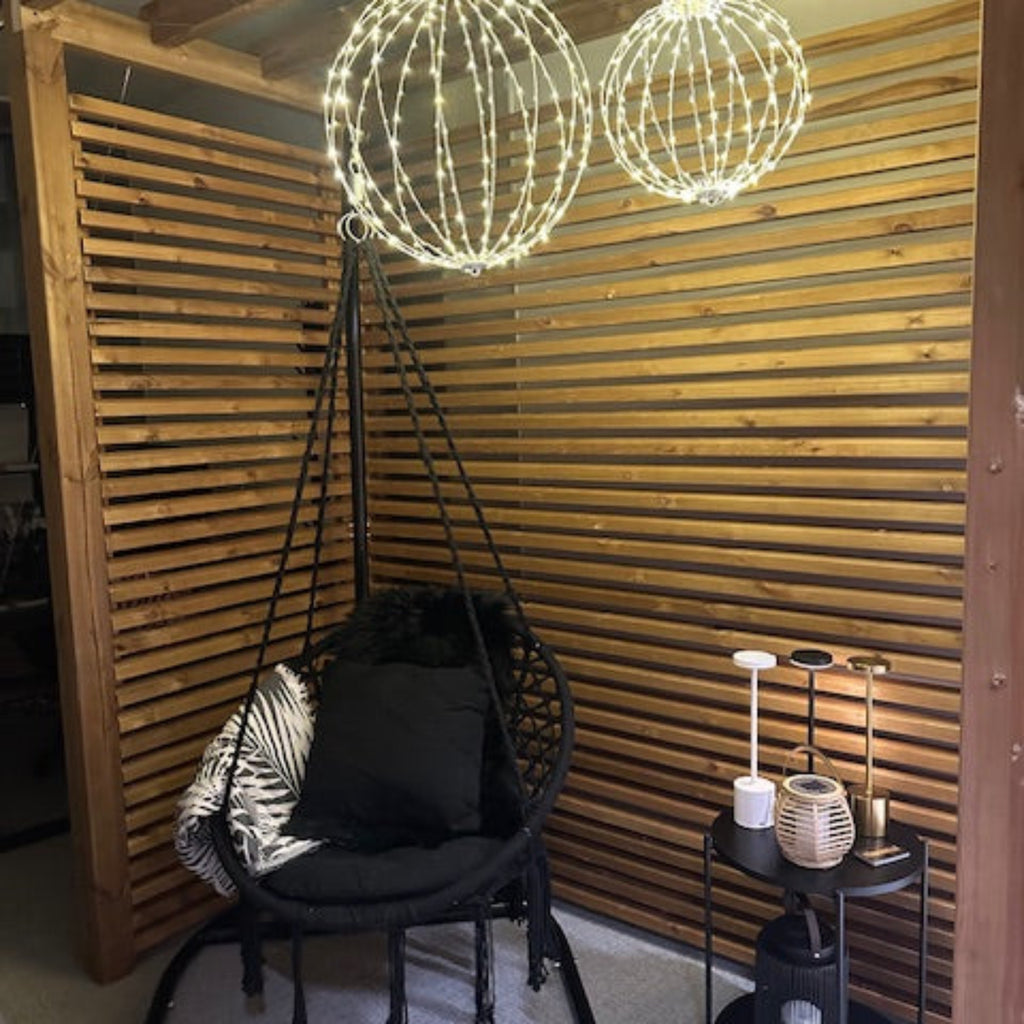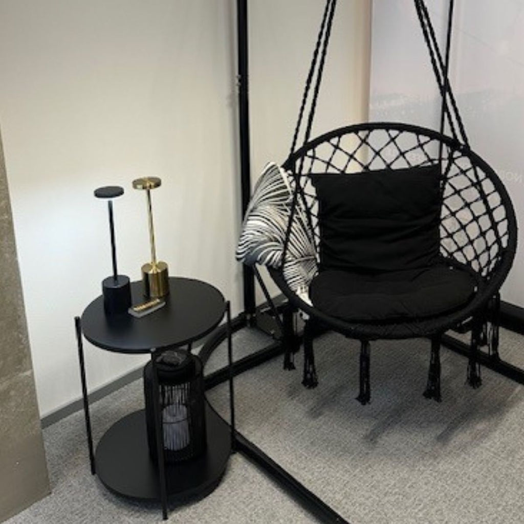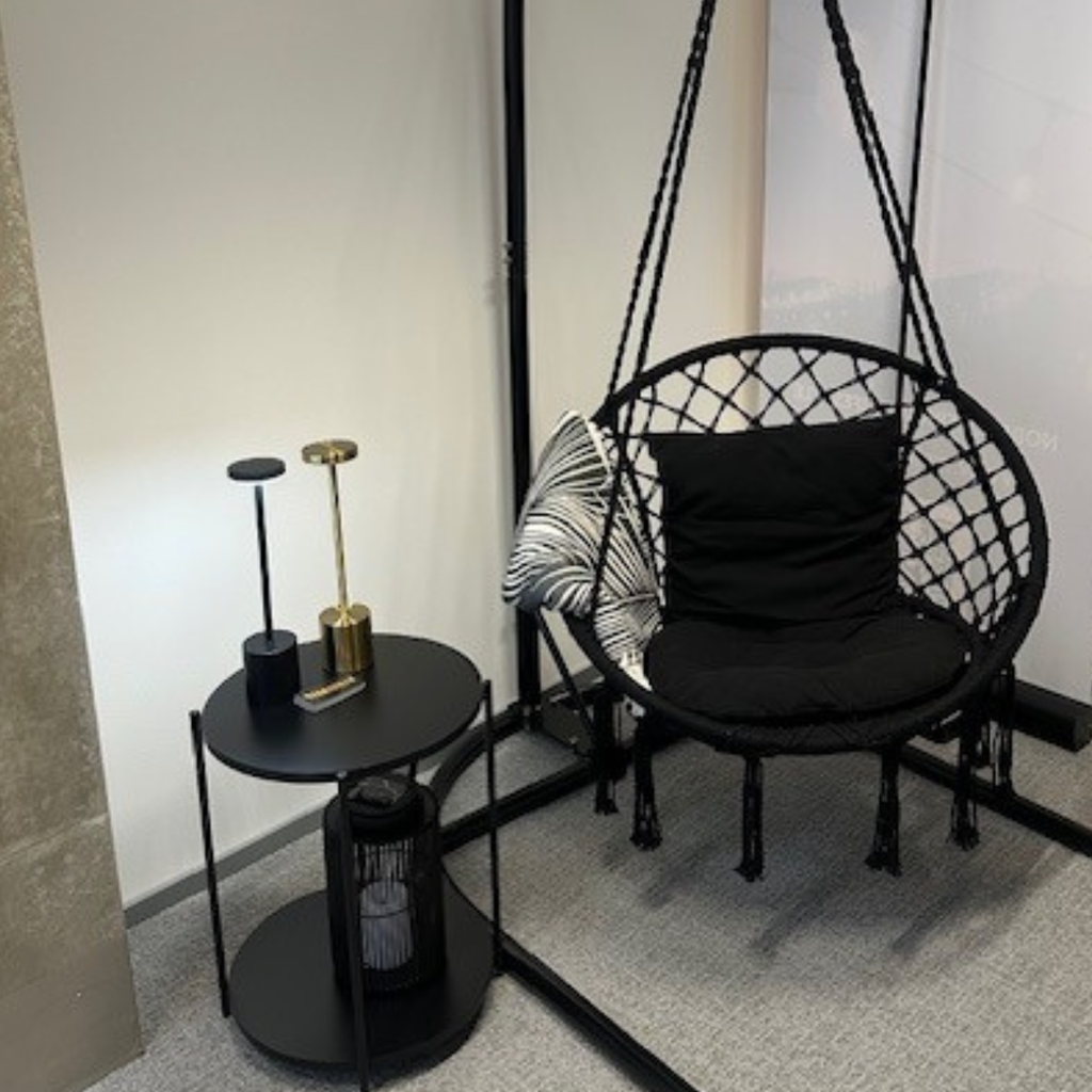 Riipputuolin kauniit letitetyt kiinnitysköydet ja ilmava rakenne tekevät siitä paitsi näyttävän sisustuselementin, myös ihanan paikan rentoutumiseen. Valittavanasi on kaksi klassista väriä: syvä musta tai raikas valkoinen – molemmat sopivat loistavasti niin modernille kuin rustiikkiselle terassille.
