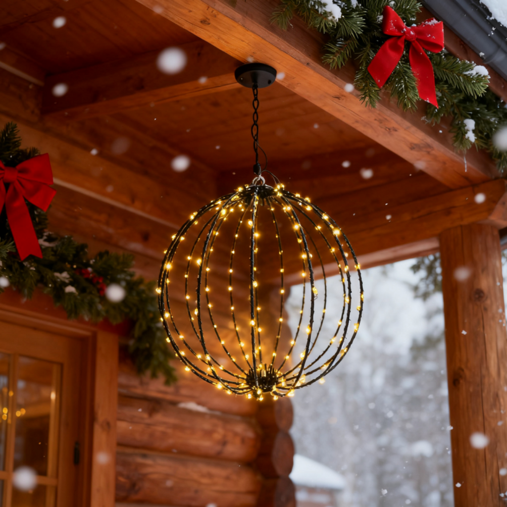 LED-valopallo on tyylikäs valokoriste ympärivuotiseen käyttöön. 160 kpl lämmin valkoista LED-valoa. Ripustussarjaan sisältyy 5 m liitosjohto. 8 eri toiminnallisuutta. Muuntaja IP44. Sisä- ja ulkokäyttöön.