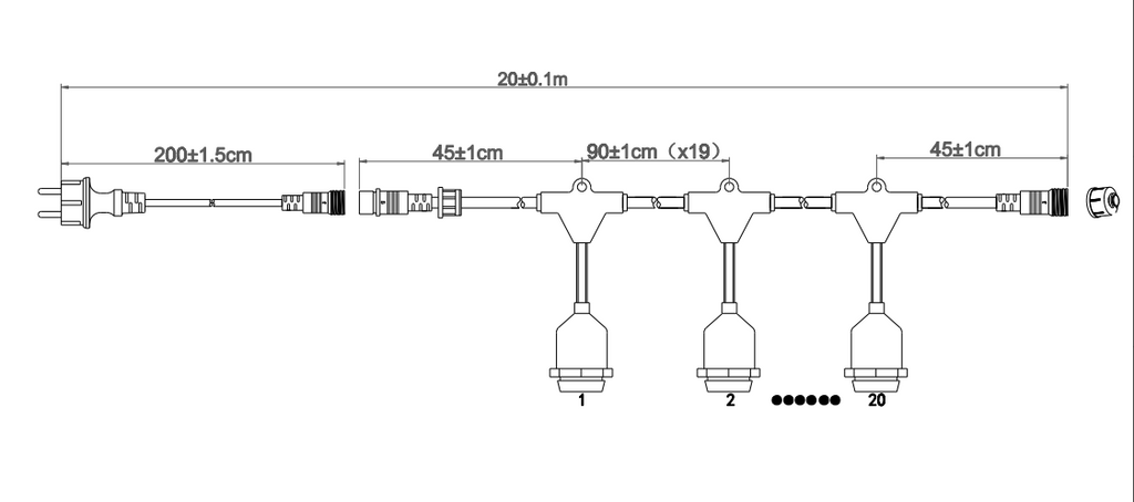 Mukaan tulee 15m valosarja, jossa 2m liitosjohto. Liitosjohdon päähän voi laittaa mukana tulevan muuntajan tai aurinkokennon. Aurinkokennossa myös usb lataus mahdollisuus.