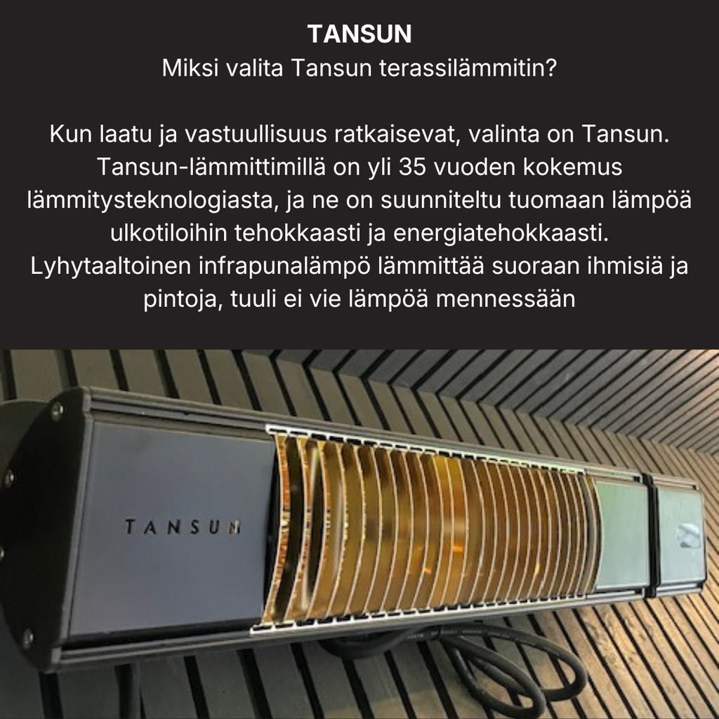 Tansun-kvartsilämmittimet tuottavat aitoa lyhytaaltoista infrapunalämpöä. Tämä auringon kaltainen lämpösäteily lämmittää ihmisiä, ei välissä olevaa ilmaa.