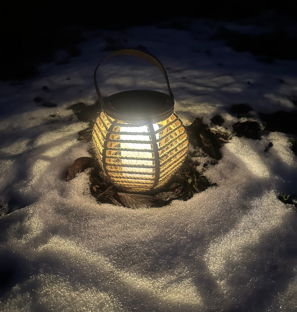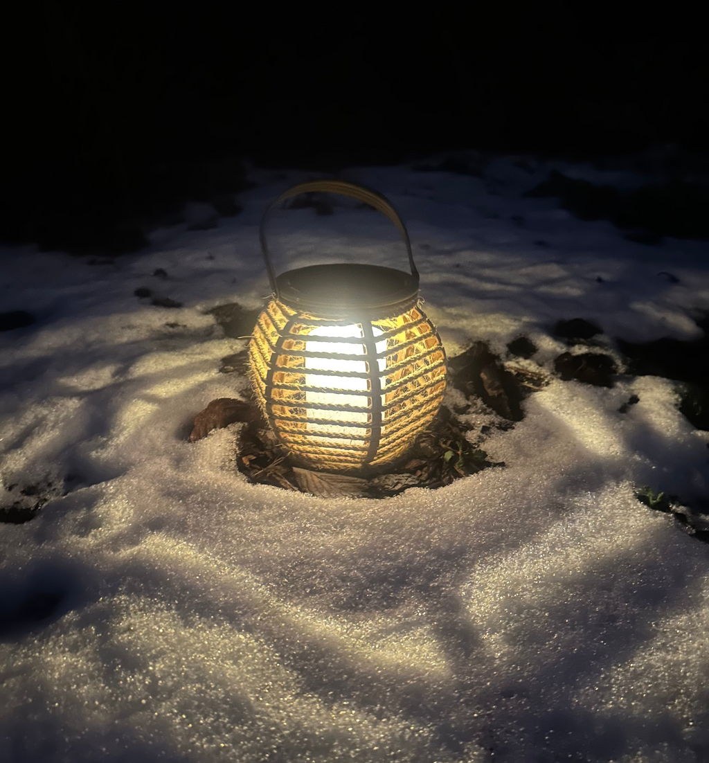 Lyhty lataa itsensä aurinkopaneelin avulla ja syttyy automaattisesti hämärän laskeuduttua. Ei johtoja, ei säätöjä – vain valoa ja hyvää mieltä. Aseta maahan, pöydälle tai ripusta kahvasta – lyhty toimii missä vain. Valo riittää, ei tarvitse olla aurinkoinen sää, joten palaa myös talvella.